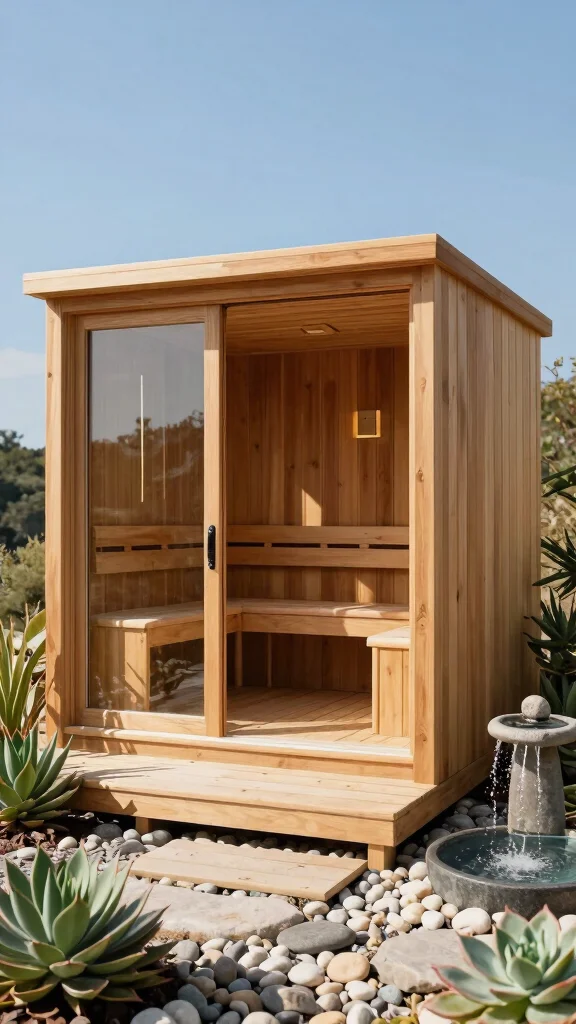 Create your own peaceful sanctuary with a Zen garden sauna retreat focused on tranquility. This design emphasizes simplicity and harmony, allowing you to relax and find your center. Picture your sauna nestled in a garden corner, surrounded by bamboo and raked gravel paths that exude calmness.