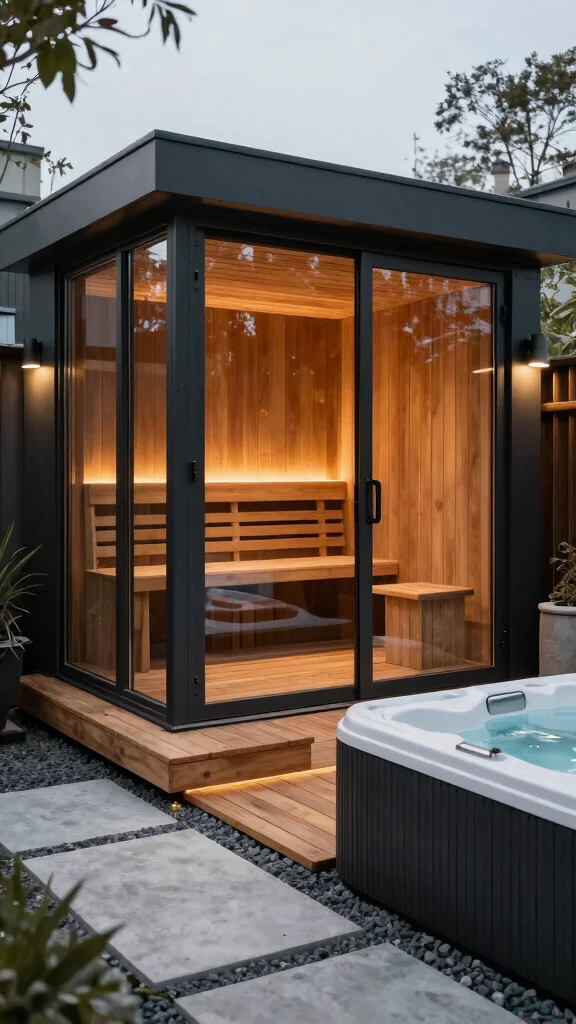 Did you know? A modern industrial retreat with metal accents and large glass panels creates an open feel while cutting heat loss by up to 25%. Pair an outdoor sauna and hot tub on a wooden deck with industrial lighting for a practical, stylish retreat.