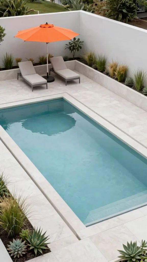 Remember: with a poly stock tank pool, less is more. Choose a neutral palette—white, gray, black—and pair it with simple geometric shapes for instant modern appeal. Add one vibrant accessory to keep it lively and practical for easy maintenance.