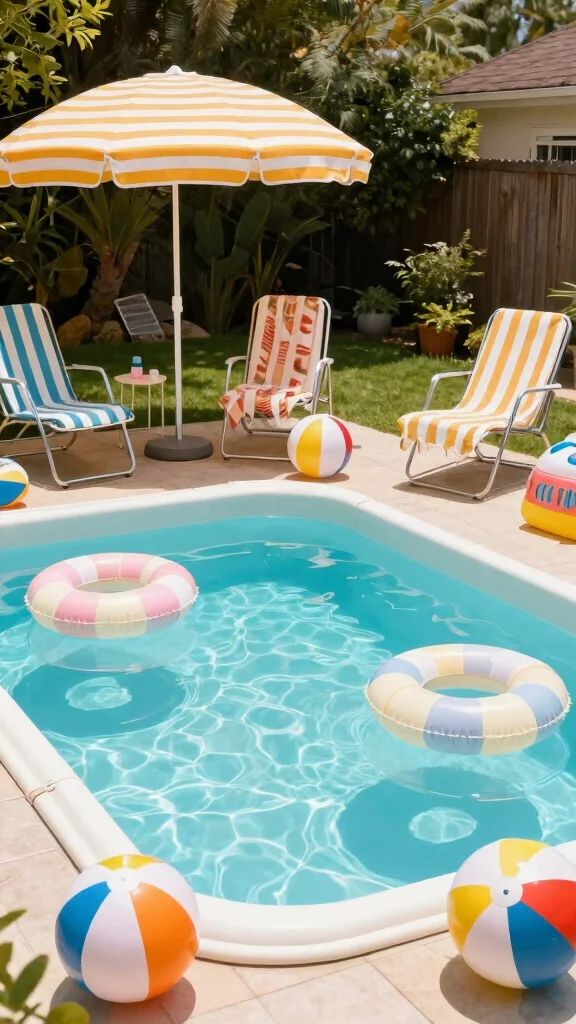 Seek out vintage metal furniture or lively picnic tables to accentuate the theme. Incorporate classic floaties and retro beach balls to complete the look, and don’t forget patterned towels or pillows that reflect vintage designs.