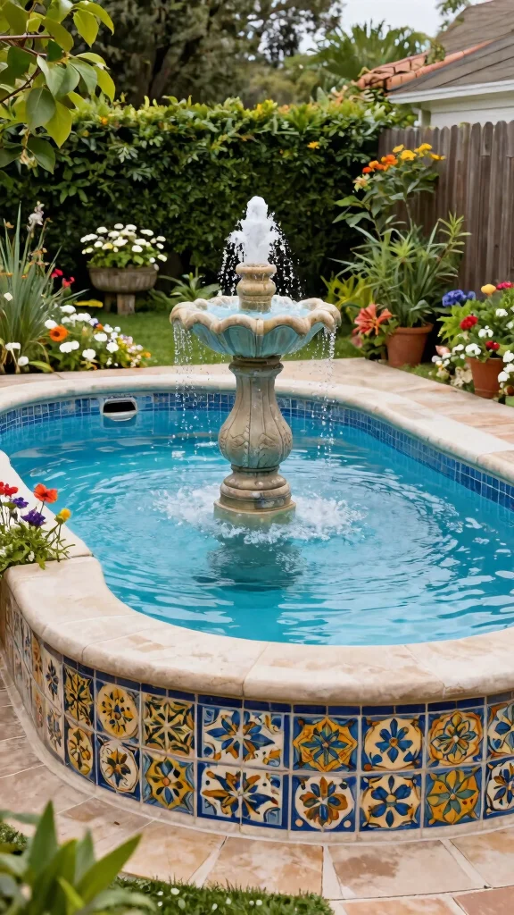 Look for quirky fountains or handmade tiles that reflect your style, and ensure any water features are easy to maintain and complement your pool’s design.