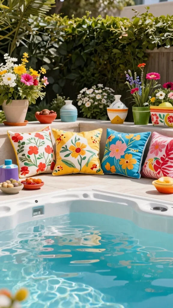 Keep your pool and hot tub area fresh and inviting with seasonal decor changes. Rotate decorations based on the time of year to maintain an appealing space. This could involve changing cushions, adding seasonal plants, or using themed decor that reflects holidays and seasonal shifts.