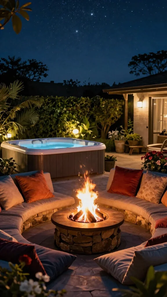 Integrate a cozy fire pit near your hot tub for an outdoor experience that invites evening gatherings. This inviting spot allows for relaxation and conversation under the stars, creating the perfect atmosphere for memories. Choose a fire pit design that complements your backyard, and surround it with comfortable seating for a welcoming space.