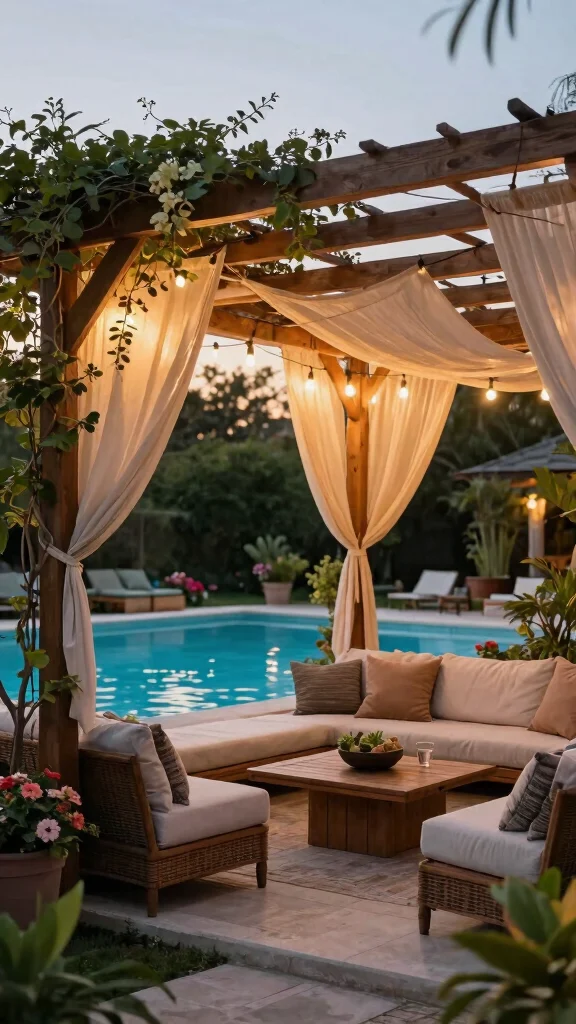 Adding a pergola near your pool creates a stylish seating area that combines shade with elegance. This visually appealing structure can be adorned with climbing plants or colorful fabrics, adding character and comfort. It serves as a cozy spot for lounging or entertaining friends and family during sunny days.