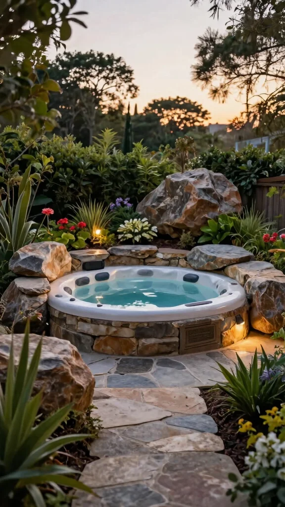 Consider using stones in varying shades to add depth and interest. Surround the hot tub with fragrant herbs or colorful blooms, and don’t forget to include soft lighting for those evening soaks. This setup isn’t just about aesthetics; it transforms your backyard into a peaceful retreat that you can enjoy year-round.