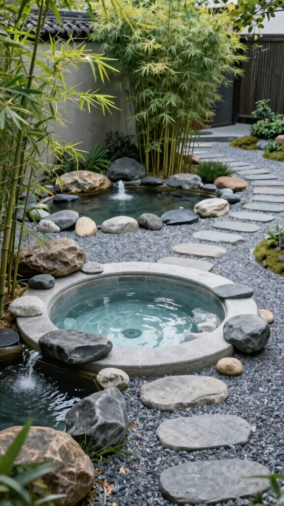 Position fine gravel and strategically placed rocks around the hot tub to create a beautifully organized space. This design emphasizes nature’s beauty and encourages mindfulness, making your hot tub experience even more enjoyable.