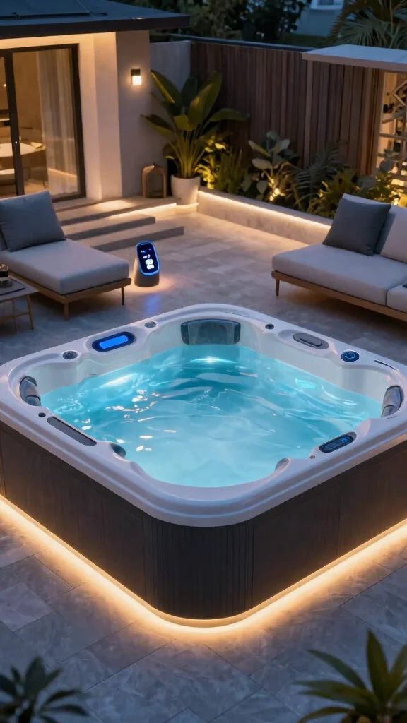 Step into the future with a tech-savvy sunken hot tub that incorporates smart features into your outdoor oasis. Consider options like app-controlled heating, advanced sound systems, and adjustable LED lighting to set the ideal mood. Surround the hot tub with modern furnishings and sleek designs to create a chic, futuristic vibe.This design allows you to manage your hot tub from anywhere while enjoying the convenience of technology in relaxation. Ensure there’s a charging station or designated spot for gadgets to keep everything organized.Key Tips: