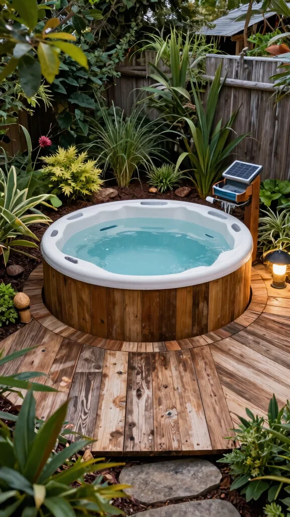 For those committed to sustainability, an eco-friendly sunken hot tub fits perfectly into your green lifestyle. Opt for energy-efficient heating systems and natural materials like reclaimed wood. Surround the hot tub with native plants that require minimal maintenance while supporting local wildlife.Incorporate features like a rainwater collection system for garden watering and utilize solar lighting to create an eco-conscious glow at night. This design not only looks appealing but also aligns with environmentally friendly practices.Key Tips: