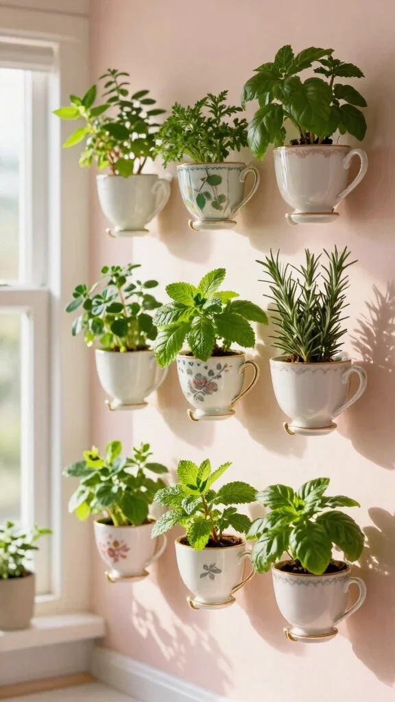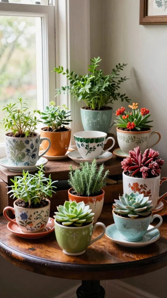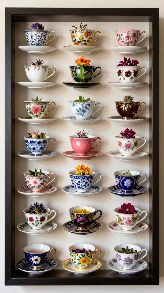 Select teacups in various colors and styles, then fill them with herbs or small flowers. This collage not only beautifies your space but also adds a splash of personality that reflects your unique style.