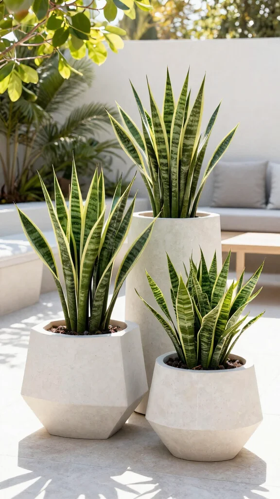 Select a few statement pots in natural materials (terracotta, stone, or decorative resin) and repeat colors across saucers, pot rims, and accessories to unify the space into a polished backyard oasis.