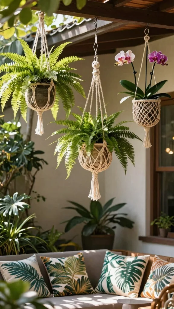 Opt for macramé hangers for a bohemian vibe or sleek metal planters for a modern touch. Strategically placing them over seating areas or pathways can create a lush atmosphere that feels inviting and serene.