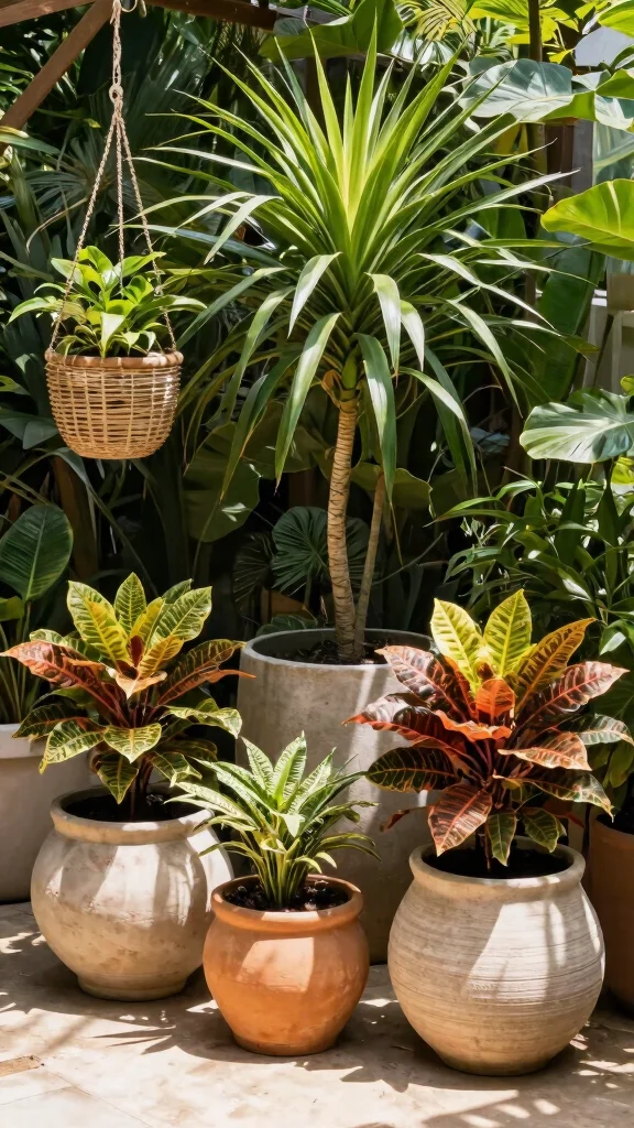 Did you know that mixing three planter types can visually enlarge a small patio by up to 30%? With tropical planter ideas, layer hanging, floor-standing, and ceramic pots for contrast—Dracaena’s spiky height against Croton’s rounded leaves creates instant depth and personality.