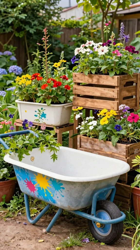 Paint or repurpose items in fun colors to express your personality while being environmentally friendly. With a little imagination, your garden can showcase quirky, eclectic planters that tell a story.