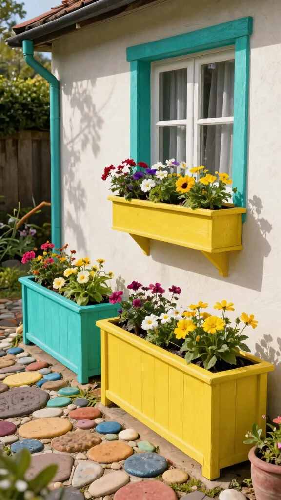 Feeling creative and want to make a bold statement with your window planters? Color-blocked planters are a fantastic way to showcase your personality! By painting your planters in contrasting colors that complement your home’s exterior, you can create a vibrant and eye-catching display. It’s a fun DIY project that adds flair to your garden!