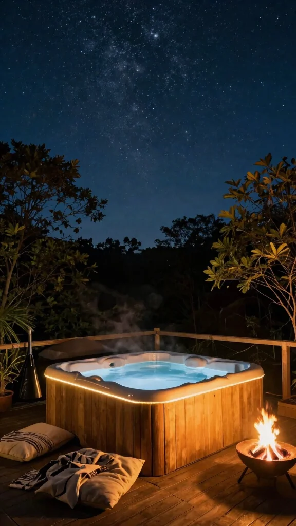 – Create a comfortable seating area for pre-soak stargazing moments.