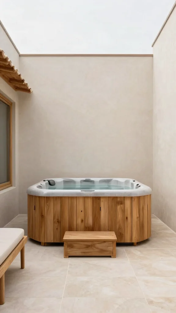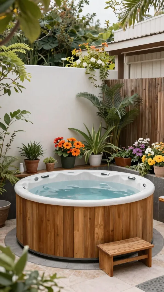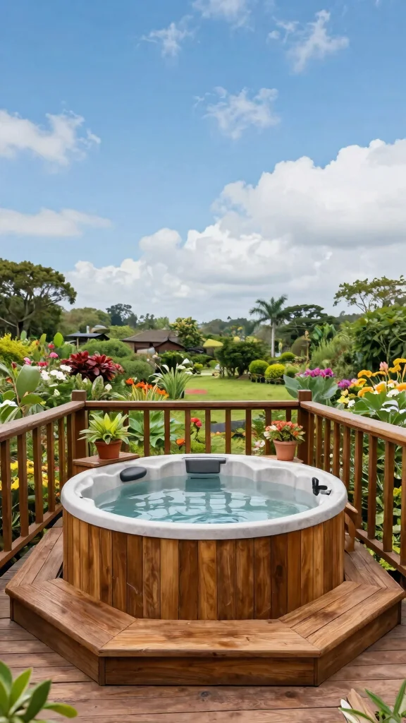 Building a wooden deck around the hot tub can offer extra room for lounging or entertaining guests. Choose local wood types that harmonize with your outdoor environment for a cohesive look.